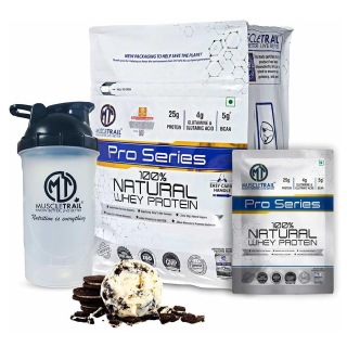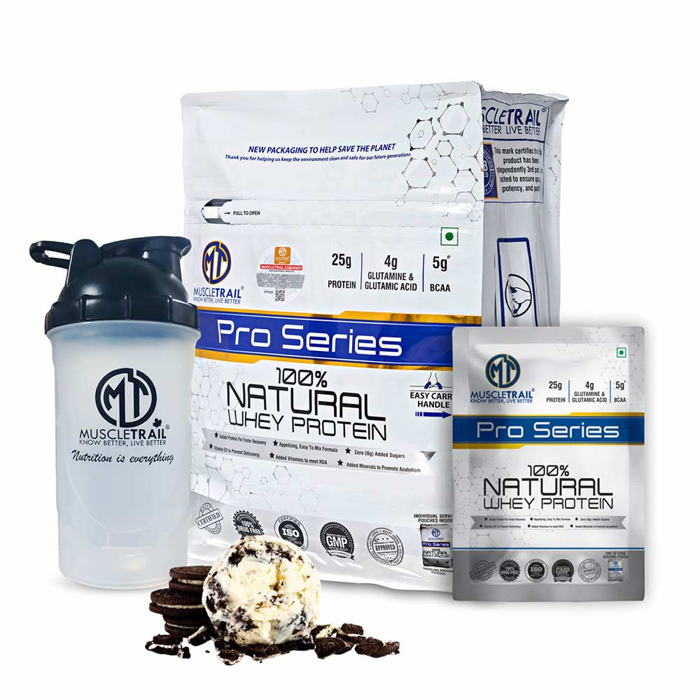 Muscle Trail Pro Series 100% Natural Whey Protein, 50 sachets/pack, Cookie & Cream (with Free Shaker Inside)