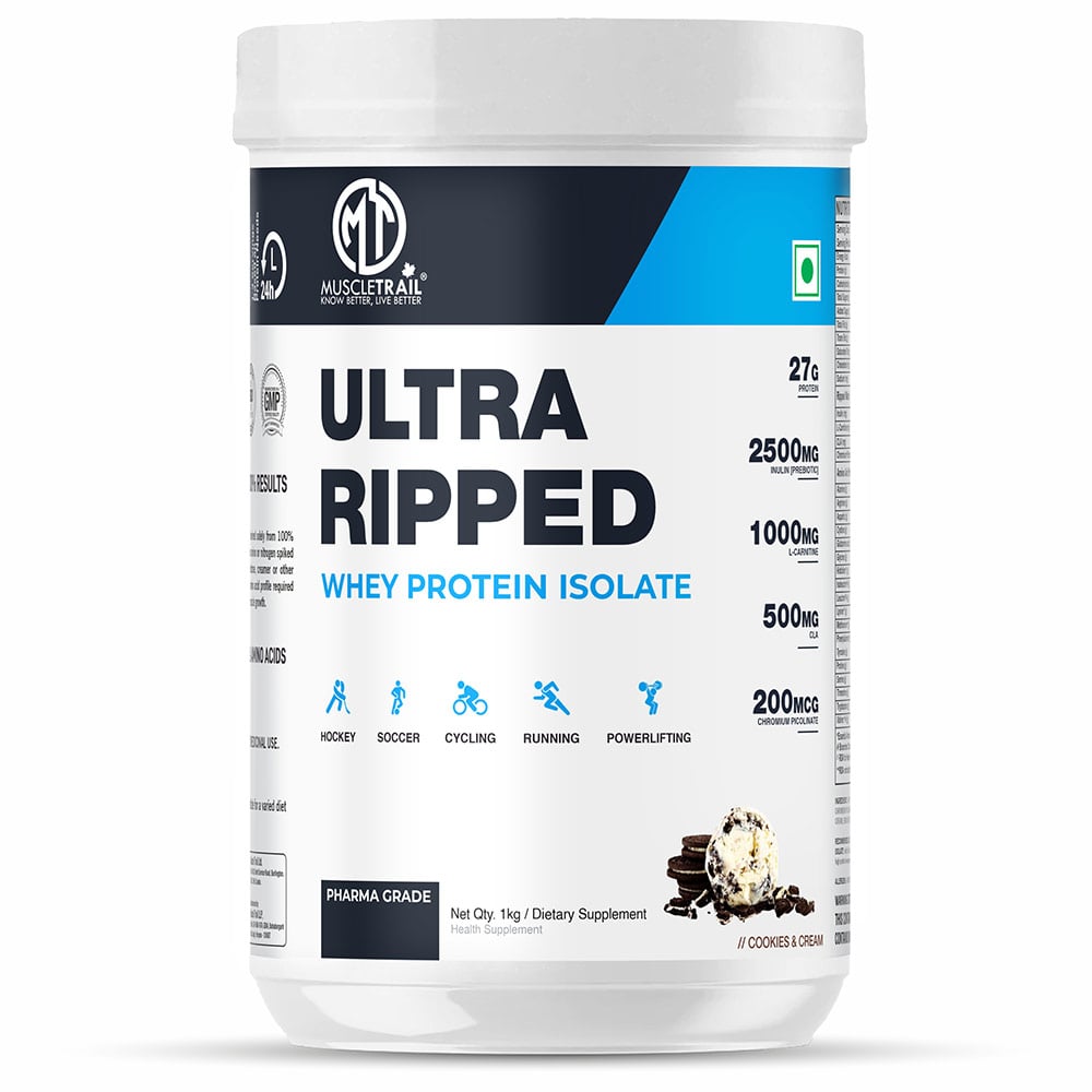 Muscle Trail Ultra Ripped Whey Protein Isolate, 1 kg (2.2 lb), Cookies & Cream