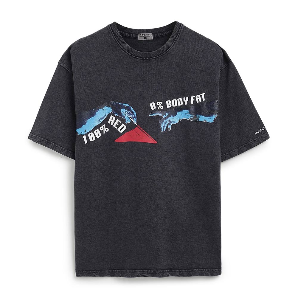 MuscleBlaze 100% Red Flag 0% Body Fat Oversized Washed T-Shirt, Large, Light Grey
