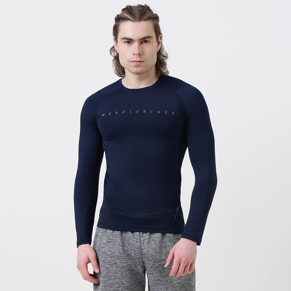 MuscleBlaze Air Tech Compression MuscleTee Full Sleeve, Medium, Navy