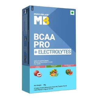 MuscleBlaze BCAA PRO + ELECTROLYTES, 48 g, 6 Servings, Tropical fest, Litchi & Watermelon kool Aid