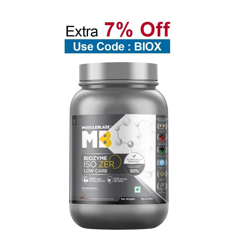 MuscleBlaze Biozyme Iso-Zero, 1 kg (2.2 lb), Low Carb Ice Cream Chocolate