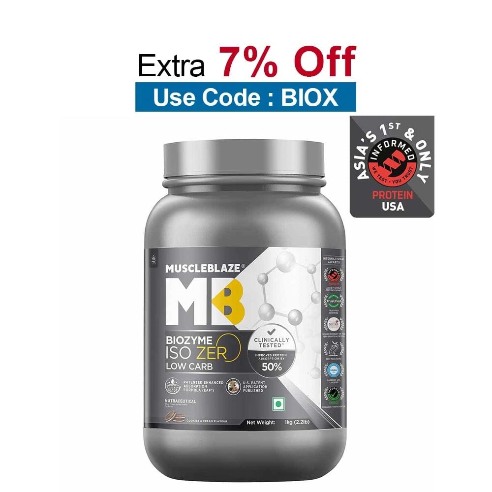 MuscleBlaze Biozyme Iso-Zero, 1 kg (2.2 lb), Low Carb Cookies & Cream