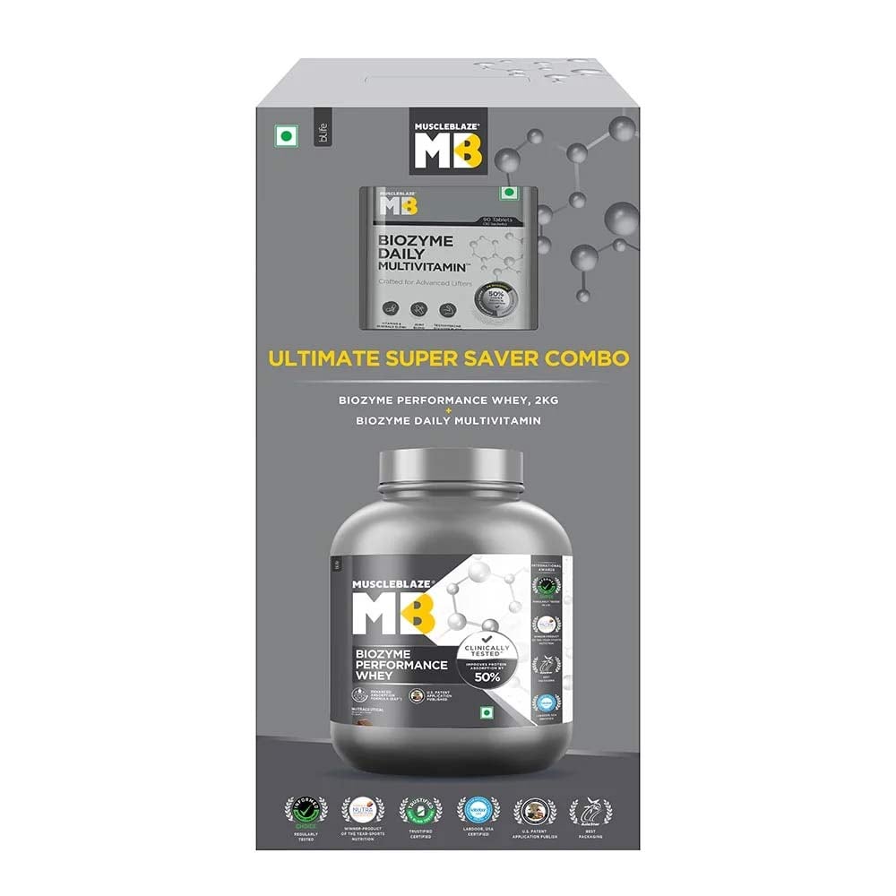 MuscleBlaze Biozyme Performance Rich Chocolate 2 kg & Biozyme Daily Multivitamin OP, 90 tablet(s) Unflavoured