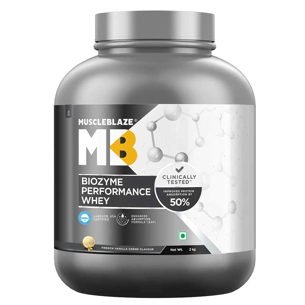 MuscleBlaze Biozyme Performance Whey Protein Powder, 2 kg (4.4 lb), French Vanilla Crème