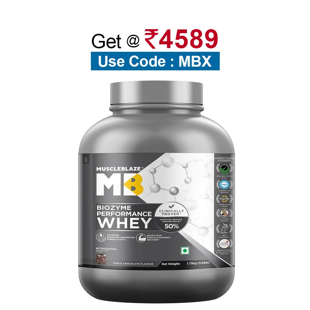 MuscleBlaze Biozyme Performance Whey, 1.75 kg (3.85 lb), Triple Chocolate
