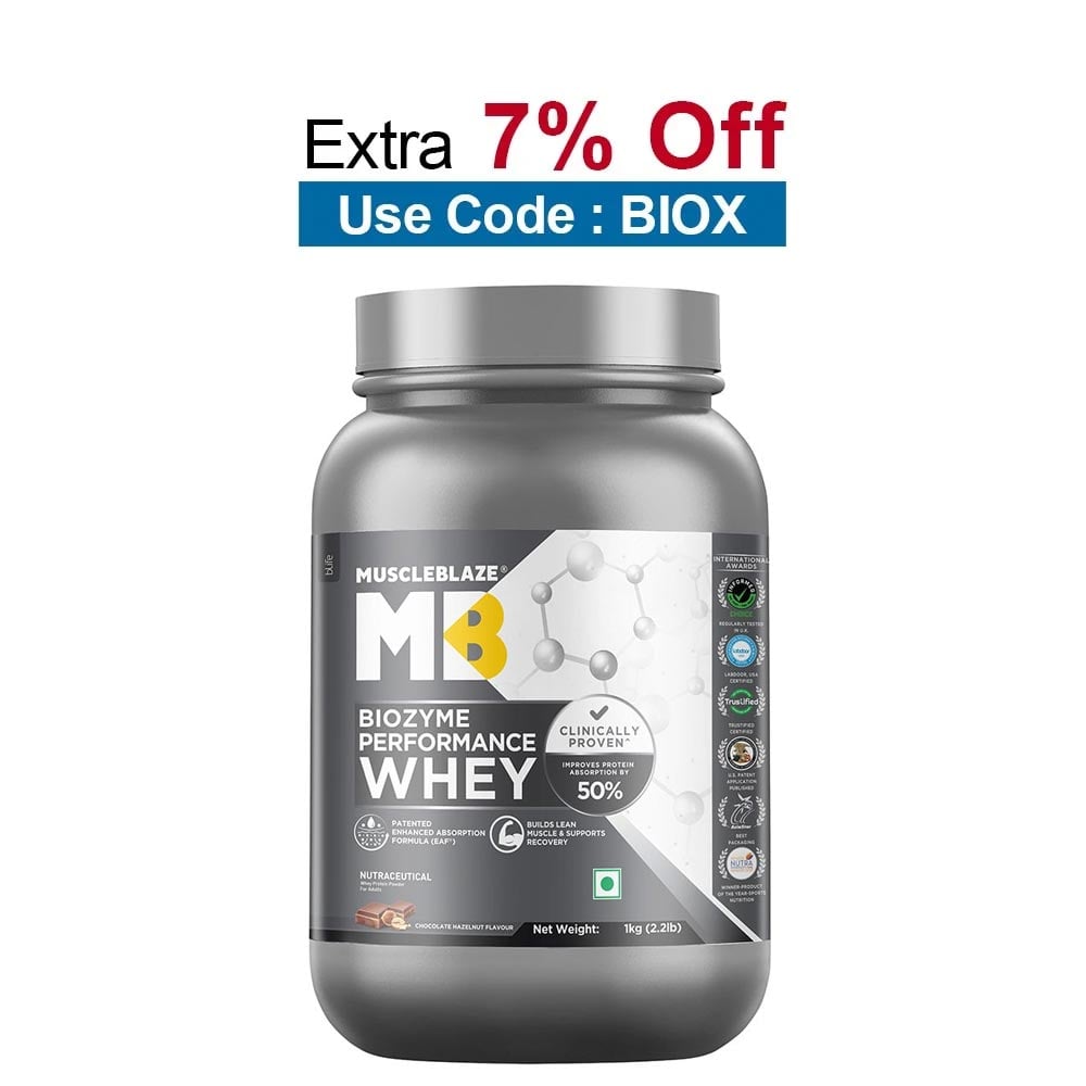 MuscleBlaze Biozyme Performance Whey, 1 kg (2.2 lb), Chocolate Hazelnut