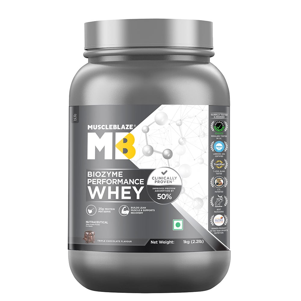 MuscleBlaze Biozyme Performance Whey, 1 kg (2.2 lb), Triple Chocolate