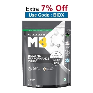 MuscleBlaze Biozyme Performance Whey, 1 kg (2.2 lb), Refill Pack Unflavoured