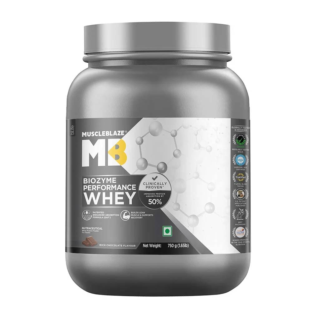 MuscleBlaze Biozyme Performance Whey., 750 g (1.65 lb), Rich Chocolate