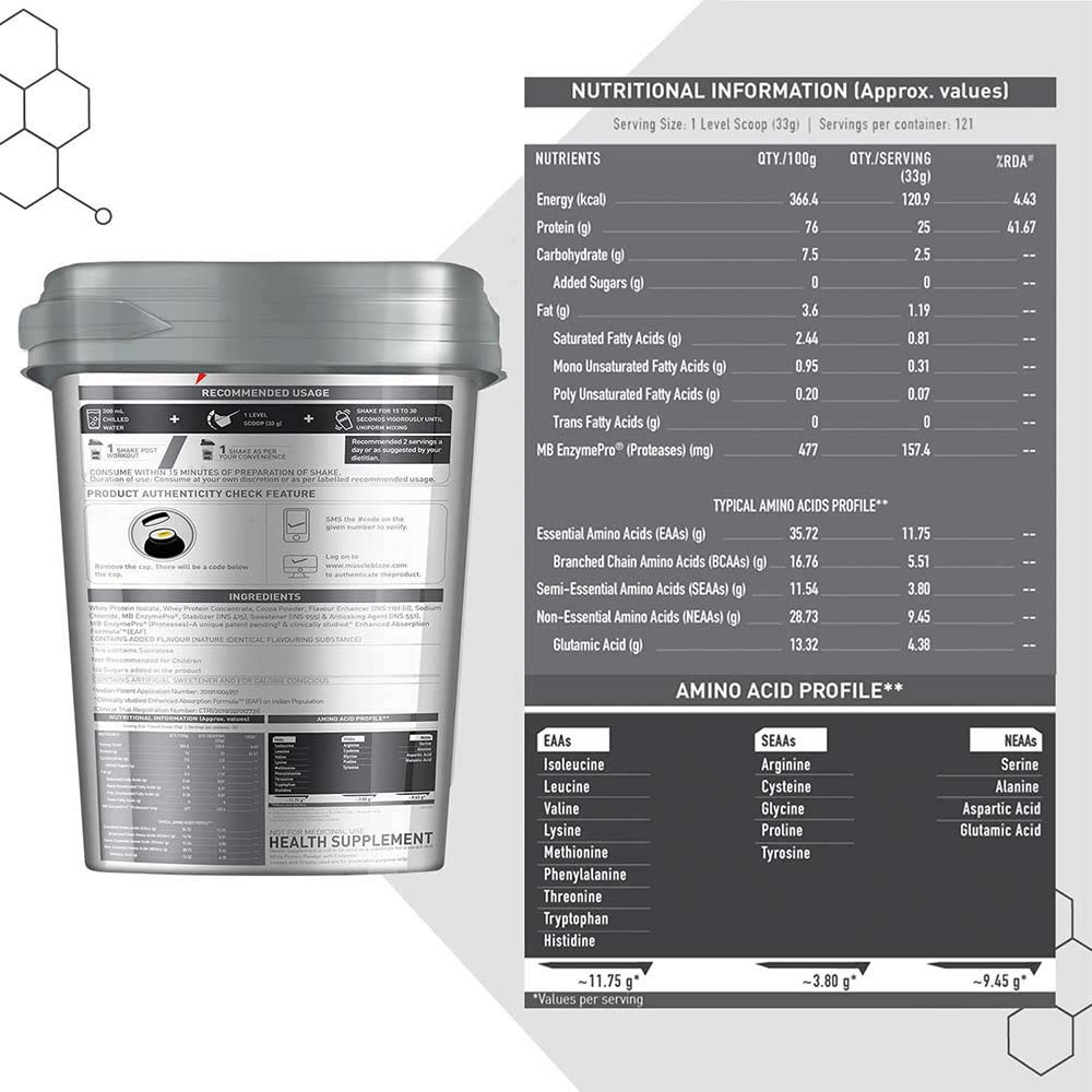 MuscleBlaze Biozyme Whey Protein Powder, 4 kg (8.8 lb), Rich Milk Chocolate