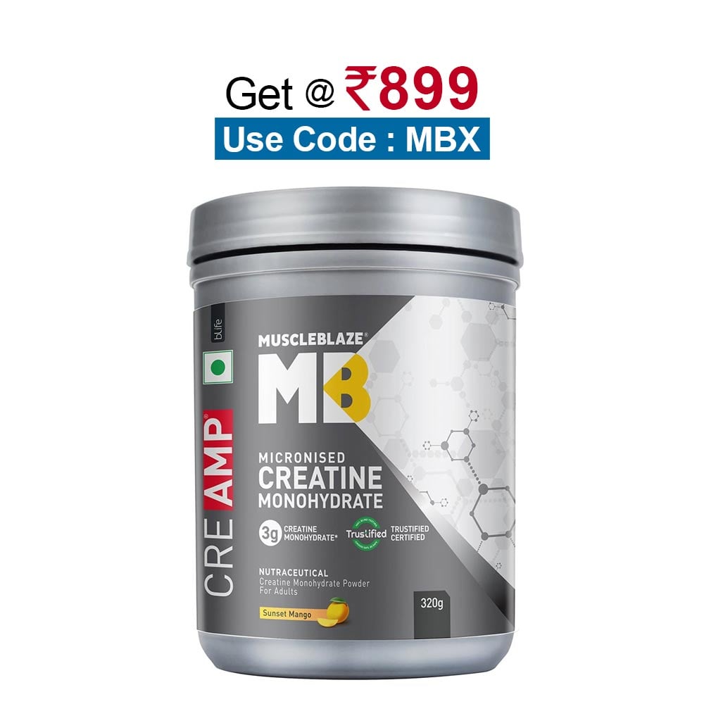 MuscleBlaze Creatine Monohydrate CreAMP, 320 g (0.71 lb), Sunset Mango