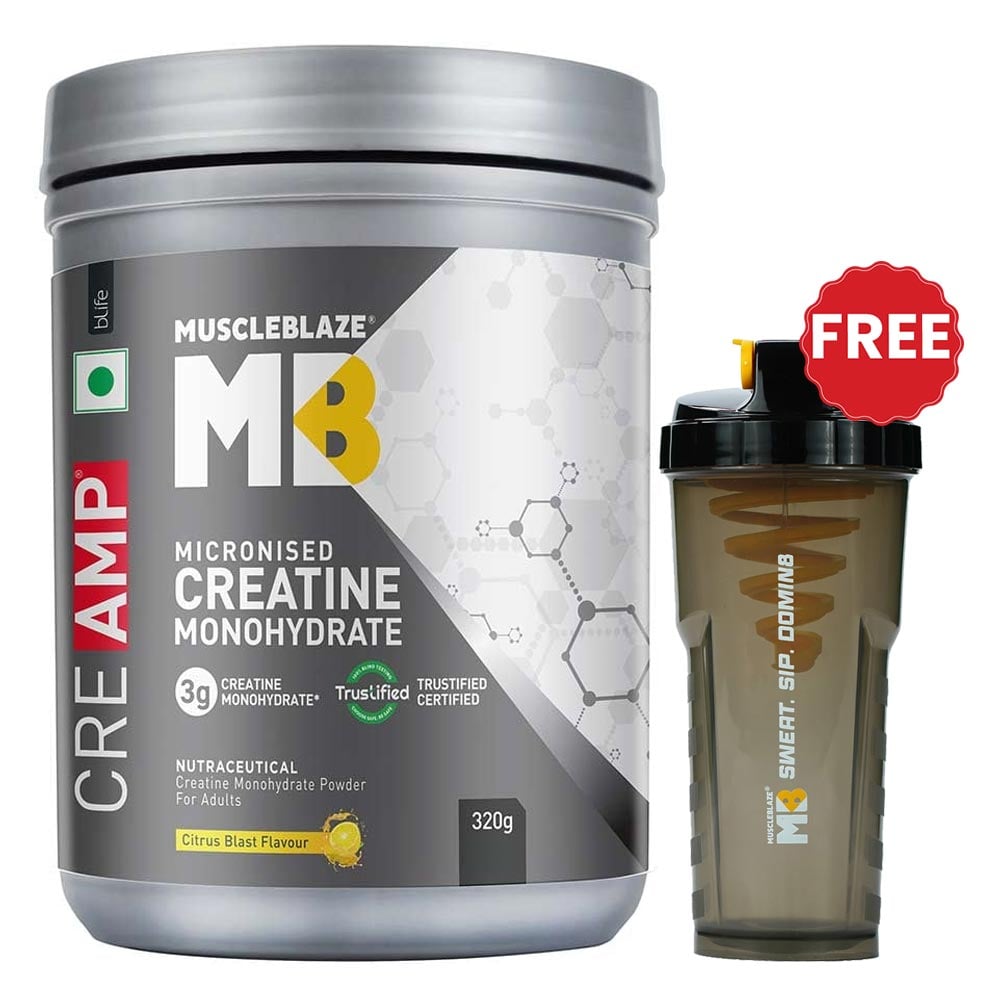MuscleBlaze Creatine Monohydrate CreAMP, 320 g (0.71 lb), Citrus Blast