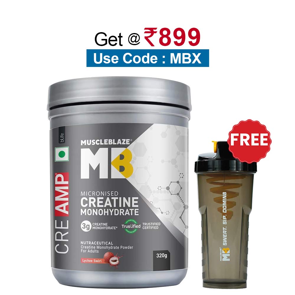 MuscleBlaze Creatine Monohydrate CreAMP, 320 g (0.71 lb), Lychee Swirl