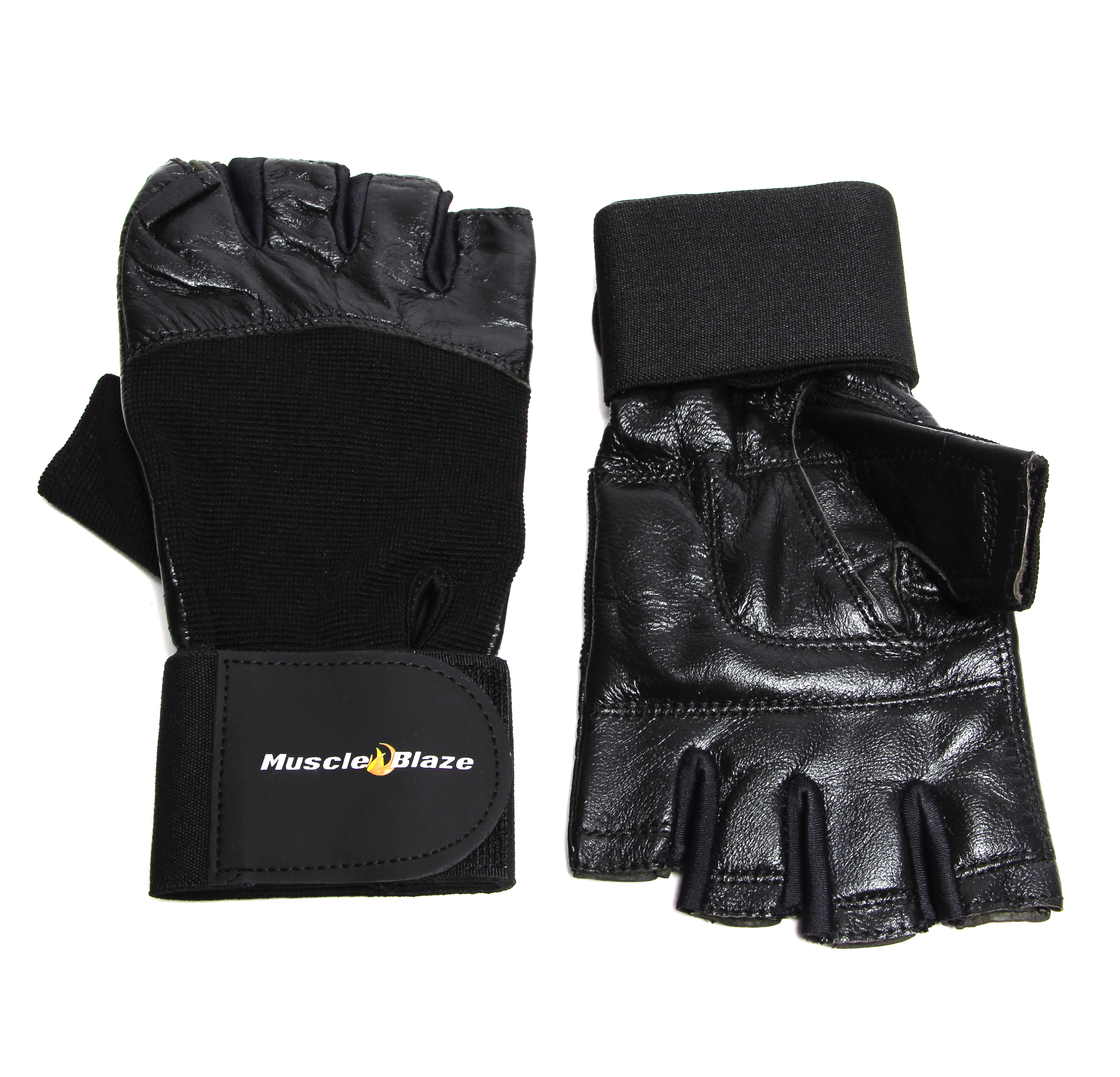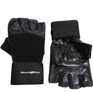 MuscleBlaze Leather Gym Gloves, Black Medium
