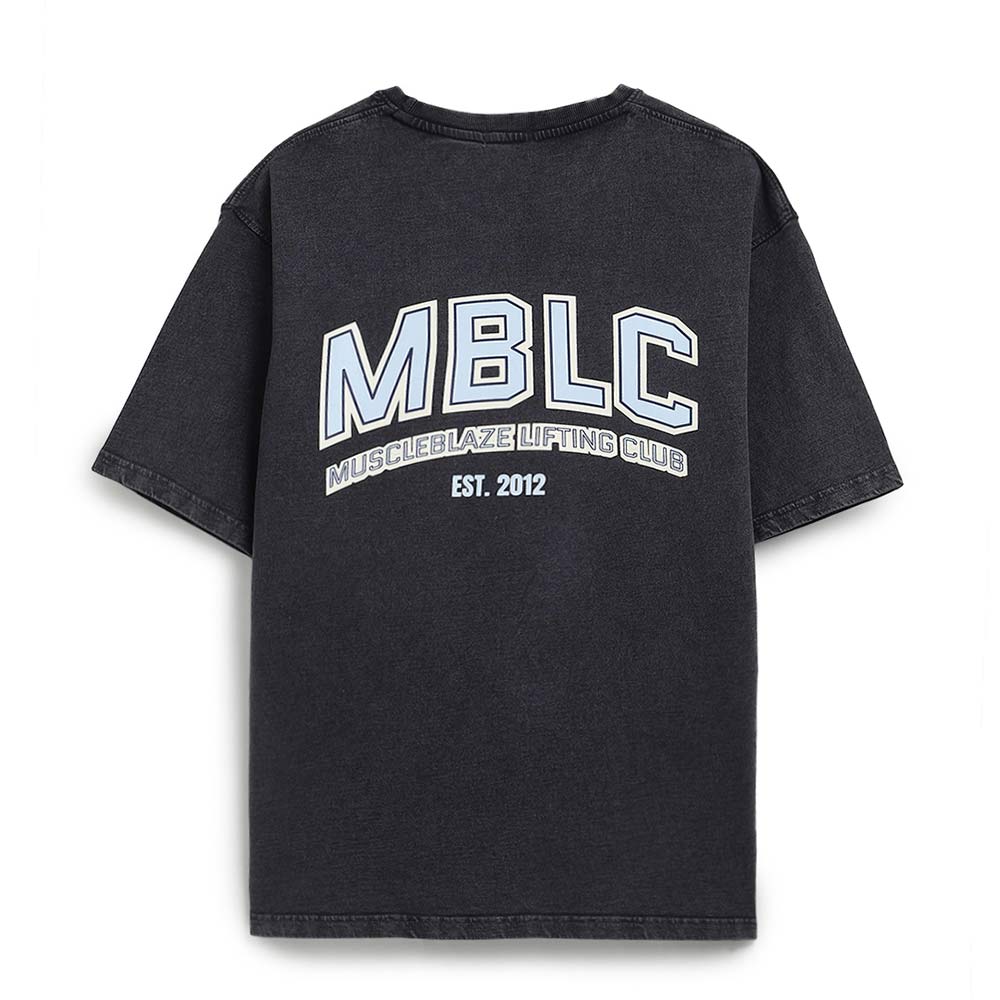 MuscleBlaze Lifting Club Oversized Washed T-Shirt, Light Grey, Medium