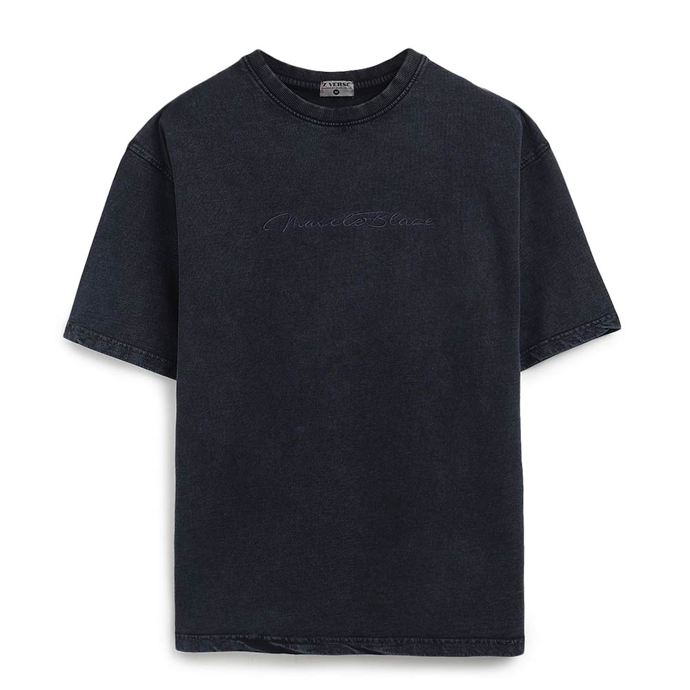 MuscleBlaze Lifting Club Oversized Washed T-Shirt, Blue Tint, Large