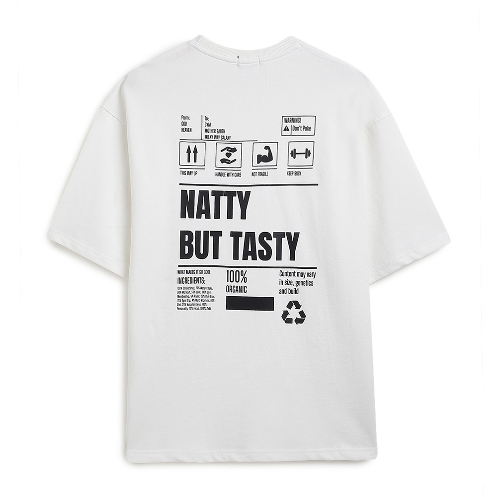 MuscleBlaze Natty But Tasty Oversized Solid T-Shirt, Small, White