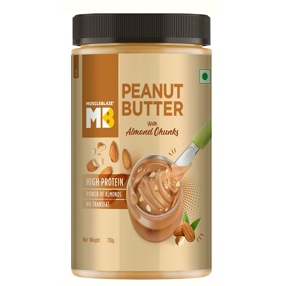 MuscleBlaze Peanut Butter with Almond Chunks, 0.750 kg Unflavoured