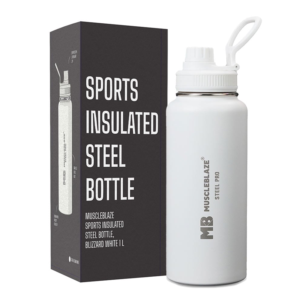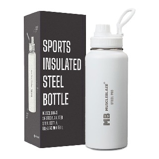 MuscleBlaze Sports Insulated Steel Bottle, 1 L, Blizzard White
