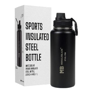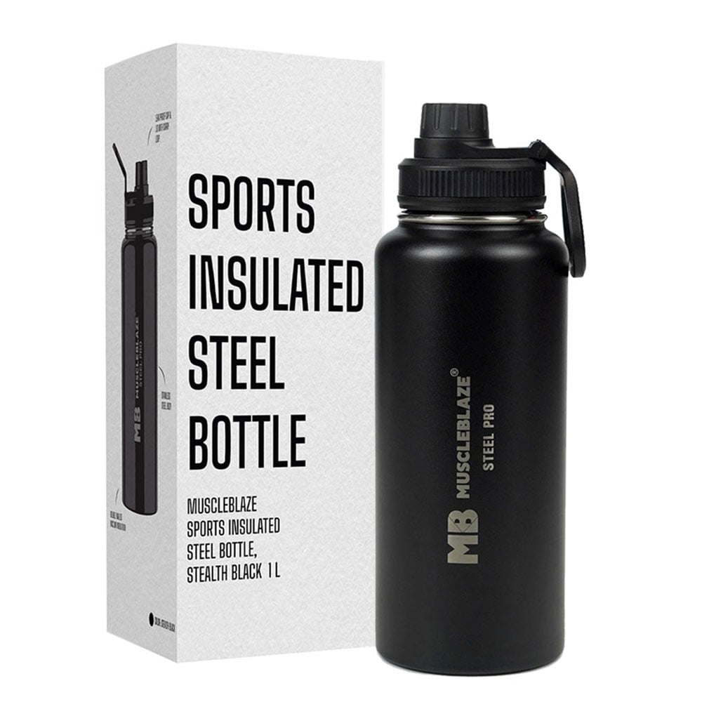 MuscleBlaze Sports Insulated Steel Bottle, 1 L, Stealth Black