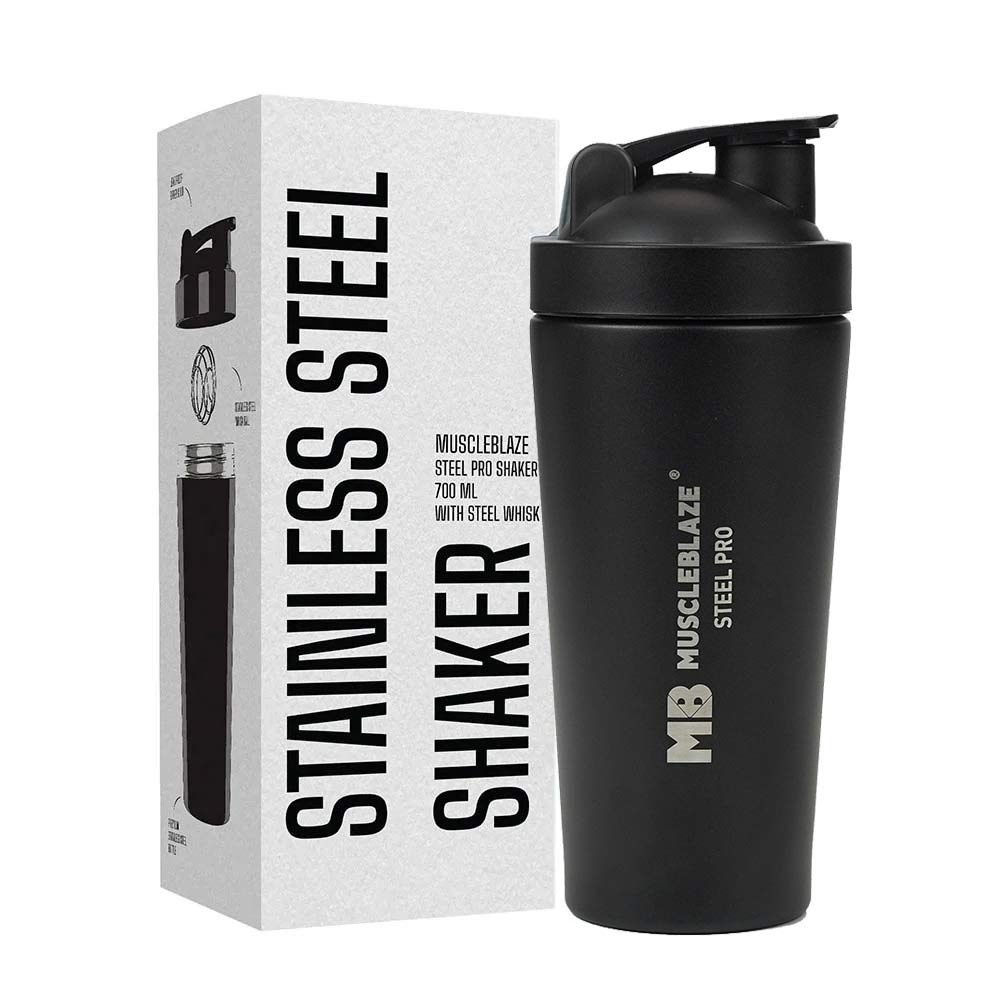 MuscleBlaze Stainless Steel Shaker, 700 ml, Stealth Black