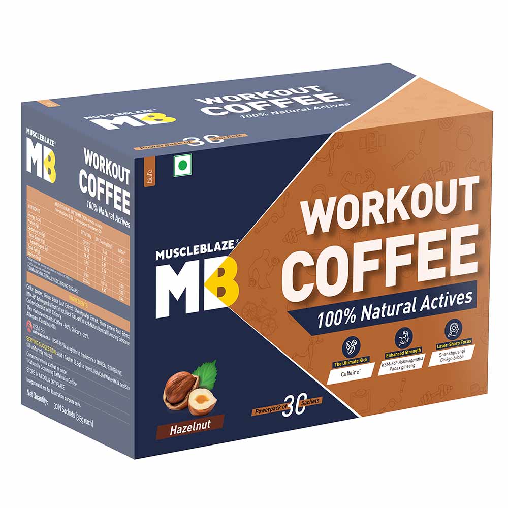 MuscleBlaze Workout Coffee, 30 sachets/pack Hazelnut Coffee with Herbs