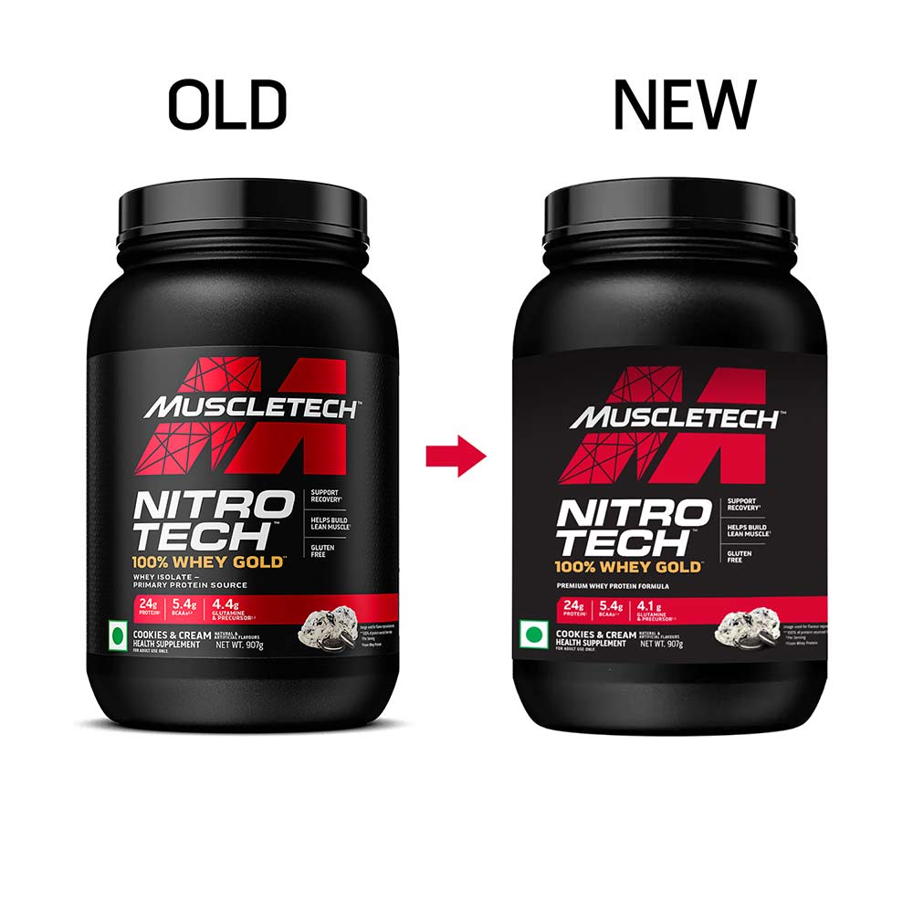 MuscleTech Nitrotech 100% Whey Gold, 905 g (1.99 lb), Cookies and Cream