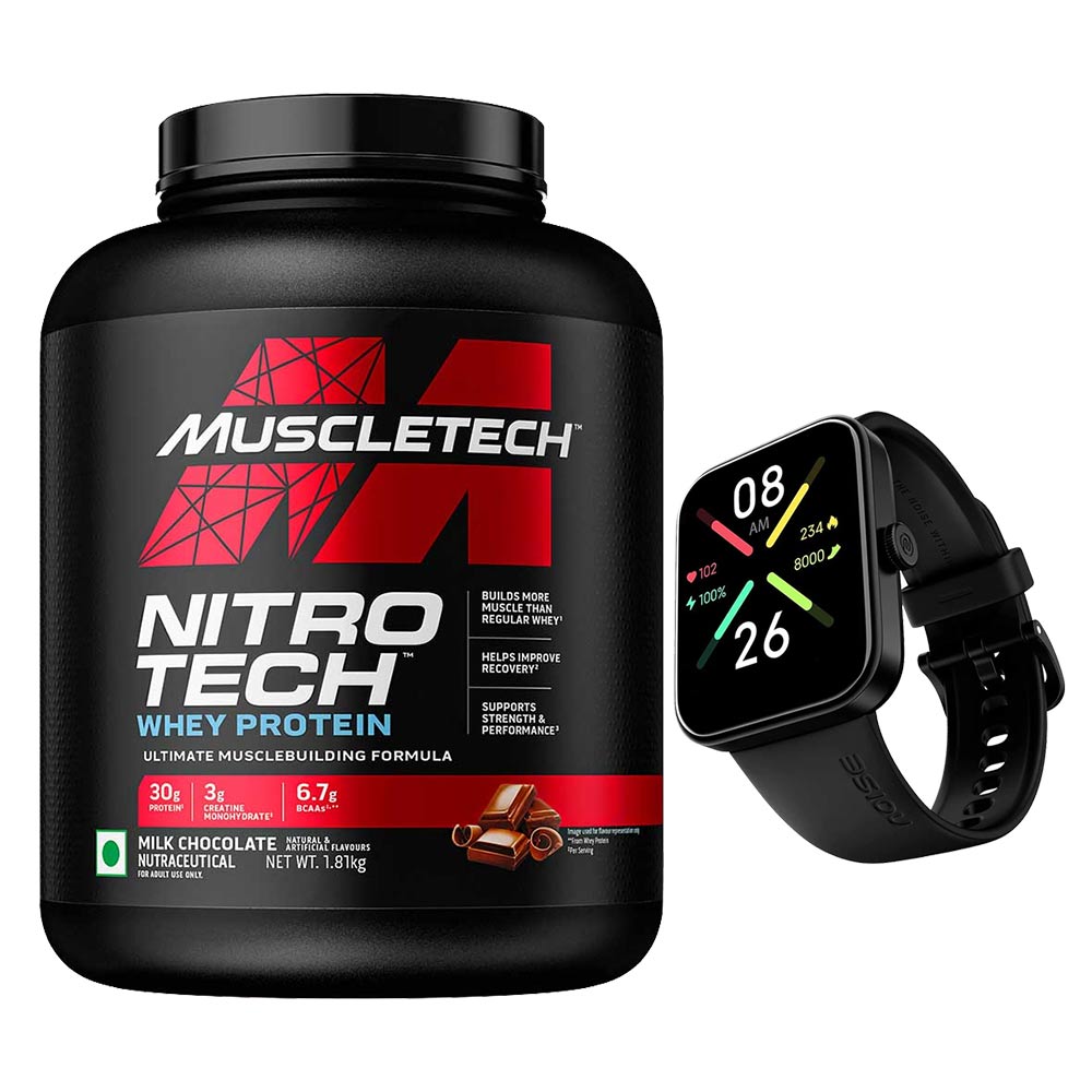 MuscleTech NitroTech Whey Protein 4 lb Milk Chocolate & Noise ColorFit Pulse Go Buzz Smartwatch, 2 Piece(s)/Pack, Combo