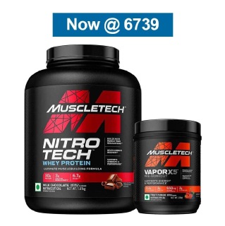 MuscleTech NitroTech Whey Protein 4 lb Milk Chocolate(India) & Vapor X5 Combo