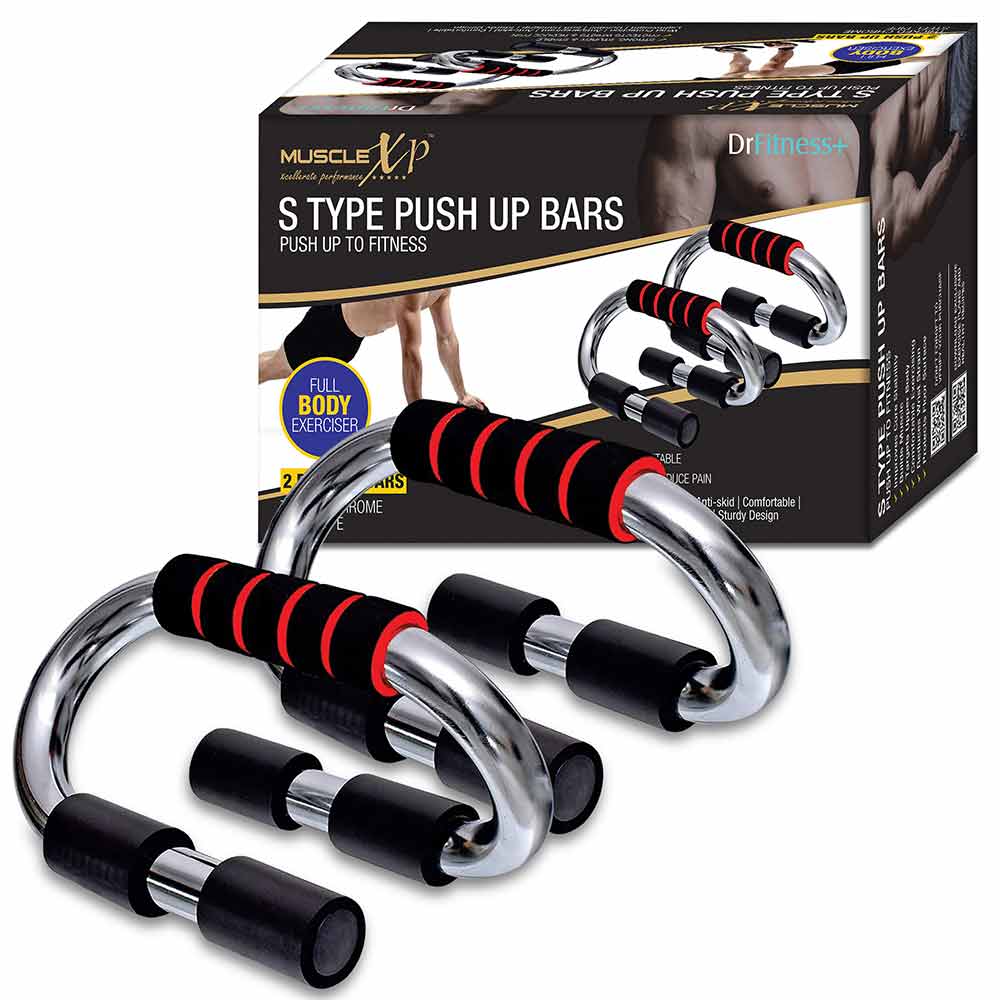 MuscleXP S Type Push Up Bars, Black & Red, Free Size