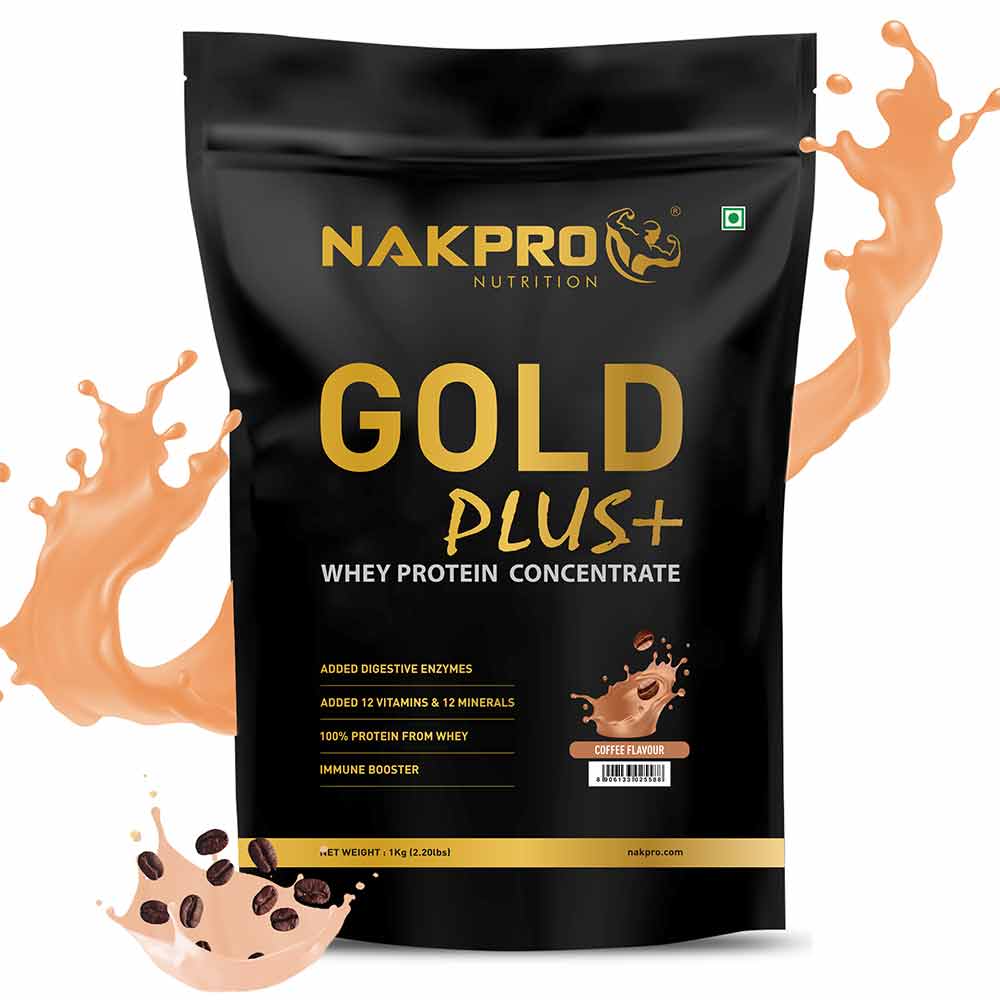 Nakpro Gold Plus+ Whey Protein Concentrate, 1 kg (2.2 lb), Coffee