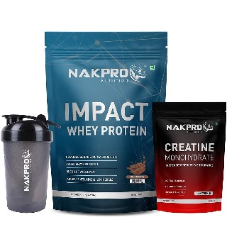Nakpro Impact Whey Protein 2.2 lb & Creatine Monohydrate 0.22 lb Combo, 3 Piece(s)/Pack, Chocolate & Unflavoured (with Shaker)