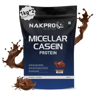 Nakpro Micellar Casein Protein, 1 kg (2.2 lb), Double Rich Chocolate (Pack of 2)