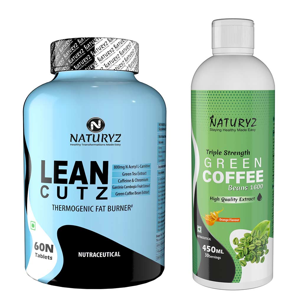 Sports NutritionWeight ManagementFat BurnerNaturyz LEAN CUTZ Thermogenic Fat Burner 60 Tablets & Triple Strength Green Coffee Bean Extract Combo