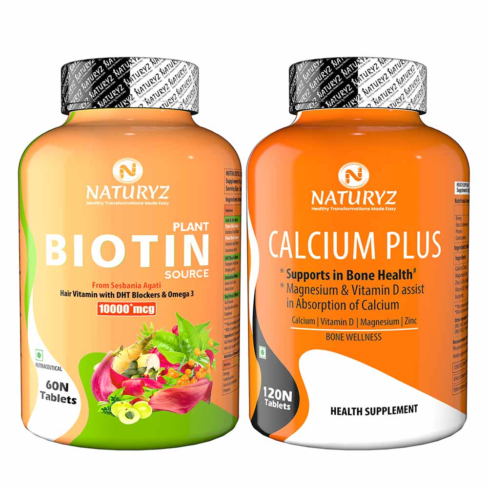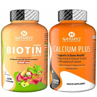 Naturyz Plant Biotin 60 Tablets & Calcium Plus 120 Tablets Combo, 2 Piece(s)/Pack
