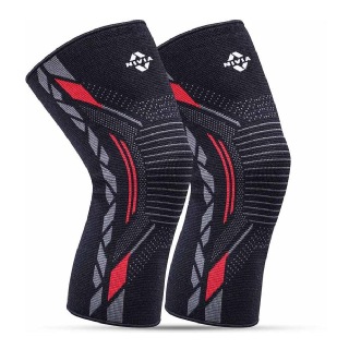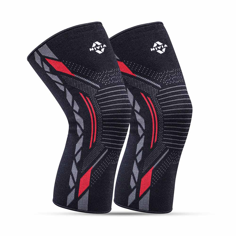 Nivia Knitted Knee Support for Men, Black/Red, Medium
