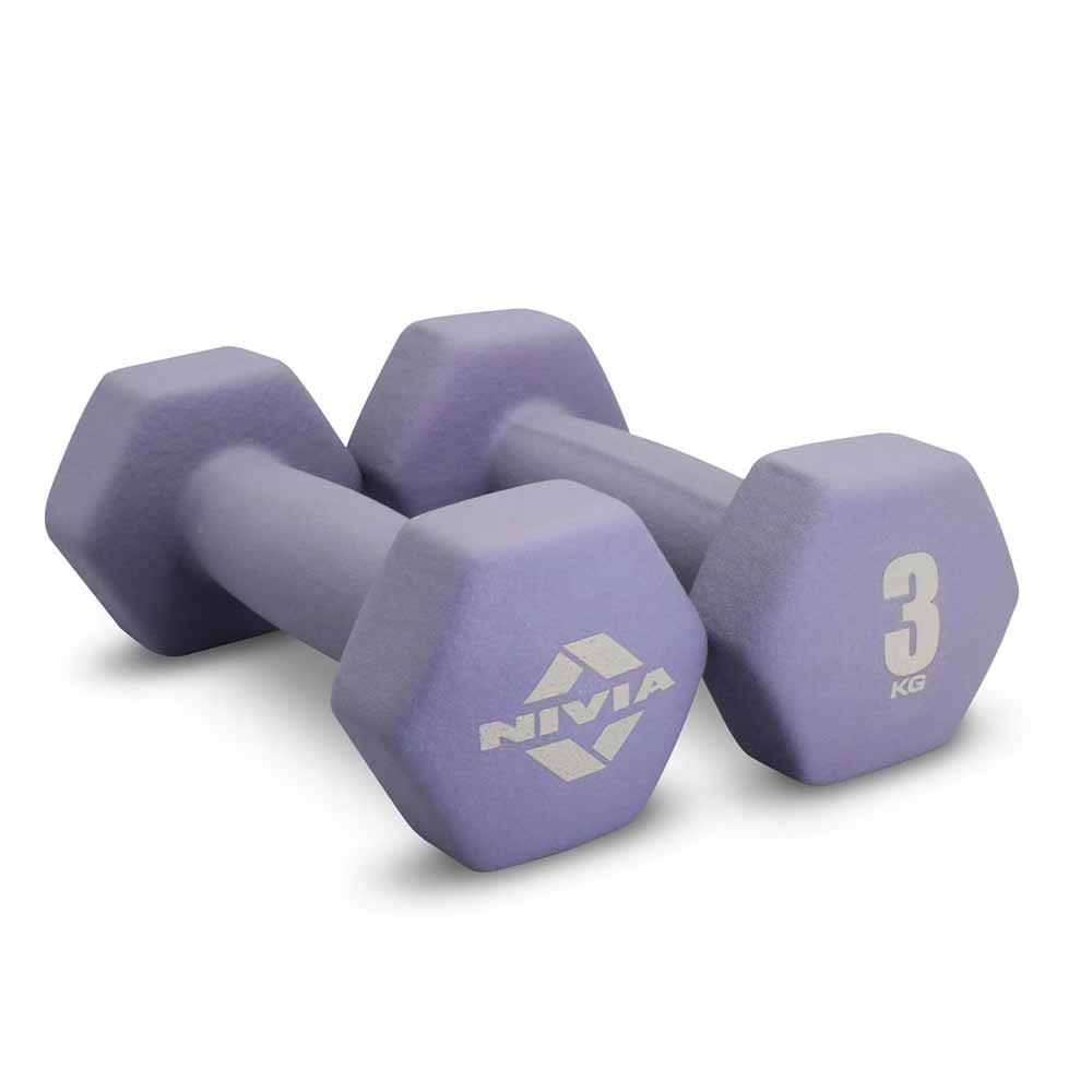 Nivia Neoprene Dumbbell, 3 kg, Light Purple