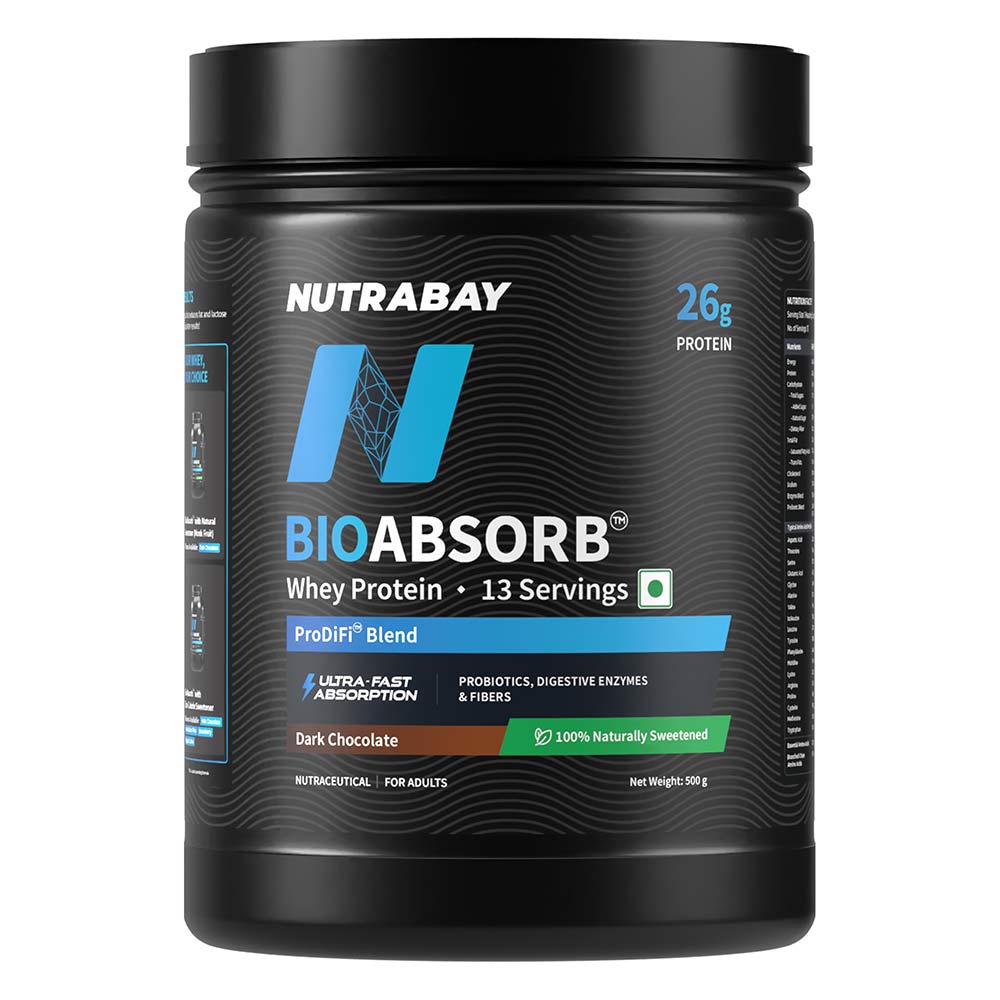 Nutrabay BioAbsorb Whey Protein, 500 g (1.1 lb), Dark Chocolate