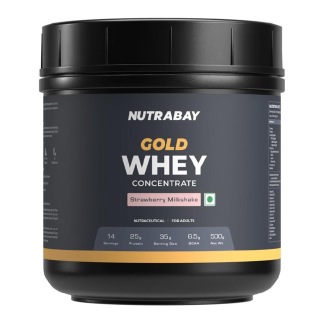 Nutrabay Gold Concentrate Whey Protein, 500 g (1.1 lb), Strawberry Milkshake