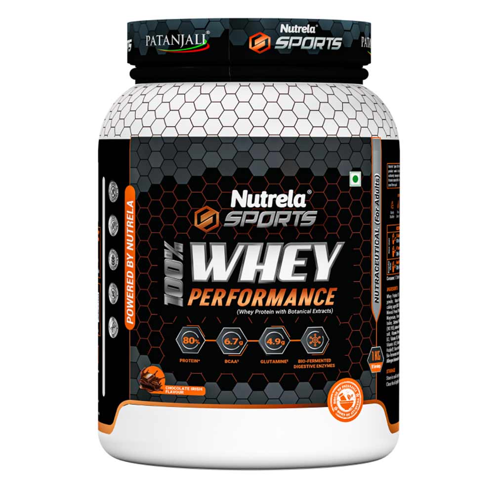 Nutrela Sports Patanjali 100% Whey Performance, 1 kg (2.2 lb), Chocolate Irish
