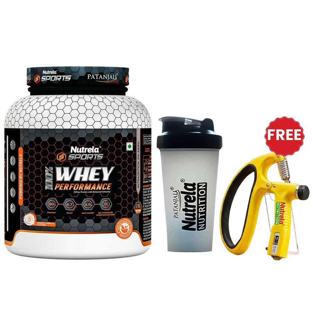 Nutrela Sports Patanjali 100% Whey Performance, 2 kg (4.4 lb), French Vanilla with Shaker