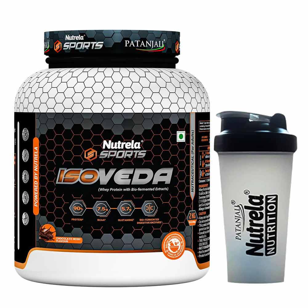 Nutrela Sports Patanjali Isoveda Whey Protein Isolate, 2 kg (4.4 lb), Chocolate Irish with Shaker