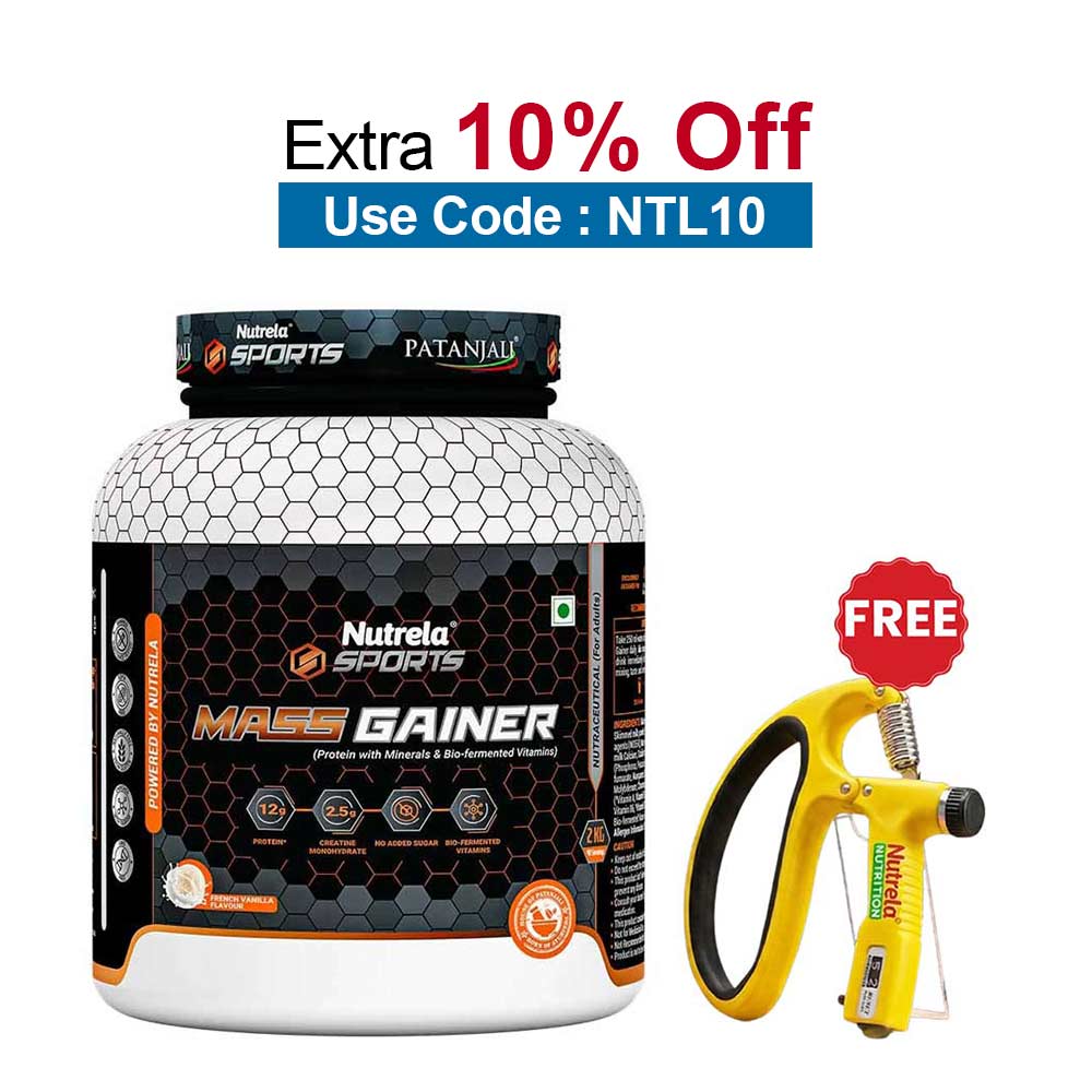 Nutrela Sports Patanjali Mass Gainer, 2 kg (4.4 lb), French Vanilla