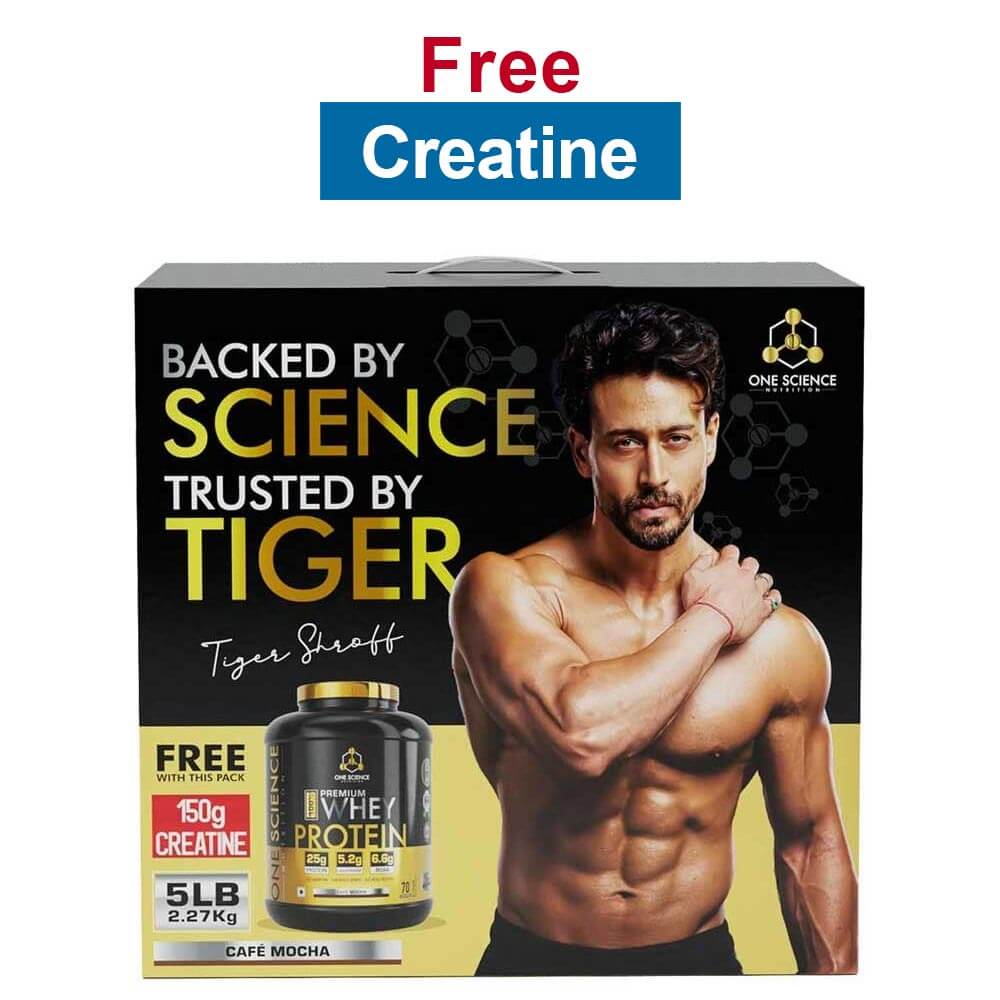 One Science 100% Premium Whey Protein, 2.27 kg (5 lb), Cafe Mocha - with Free 150g Creatine