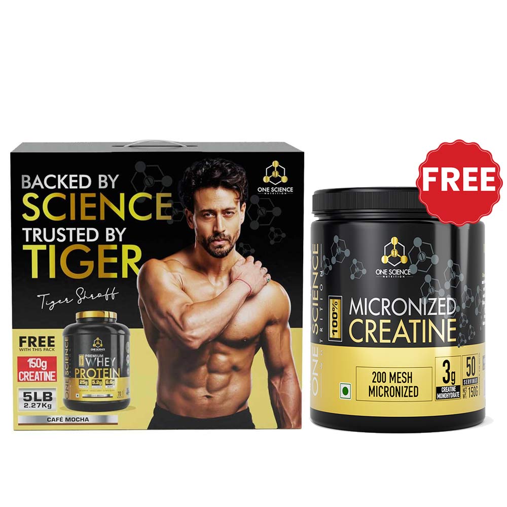 One Science 100% Premium Whey Protein, 2.27 kg (5 lb), Cafe Mocha - with Free 150g Creatine