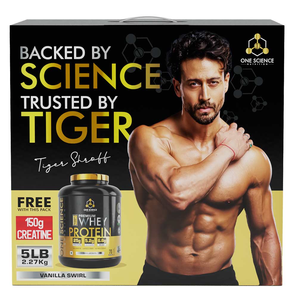 One Science 100% Premium Whey Protein, 2.27 kg (5 lb), Vanilla Swirl - with Free 150g Creatine