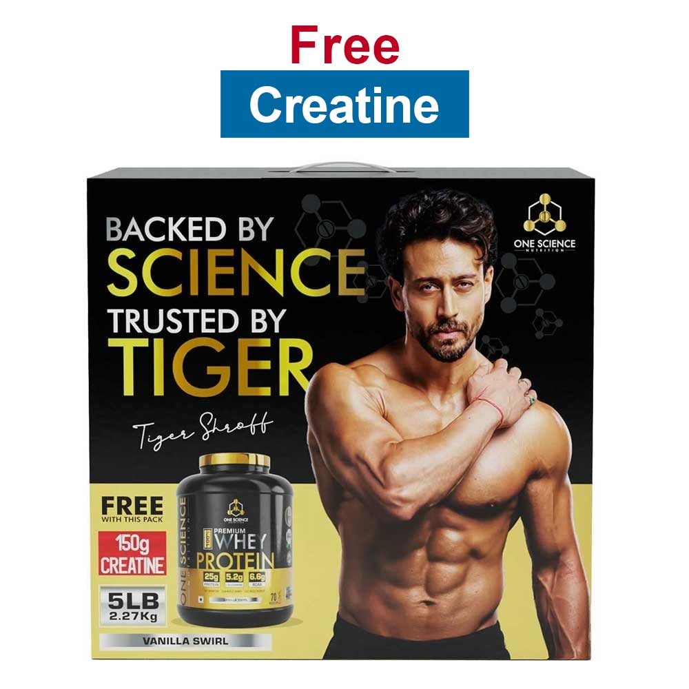 One Science 100% Premium Whey Protein, 2.27 kg (5 lb), Vanilla Swirl - with Free 150g Creatine