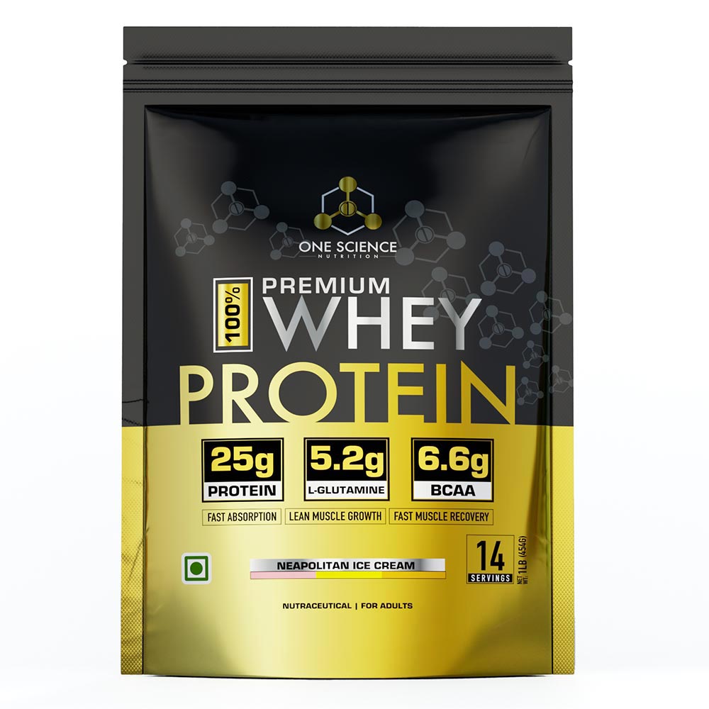 One Science 100% Premium Whey Protein., 455 g (1 lb), Neapolitan Ice Cream