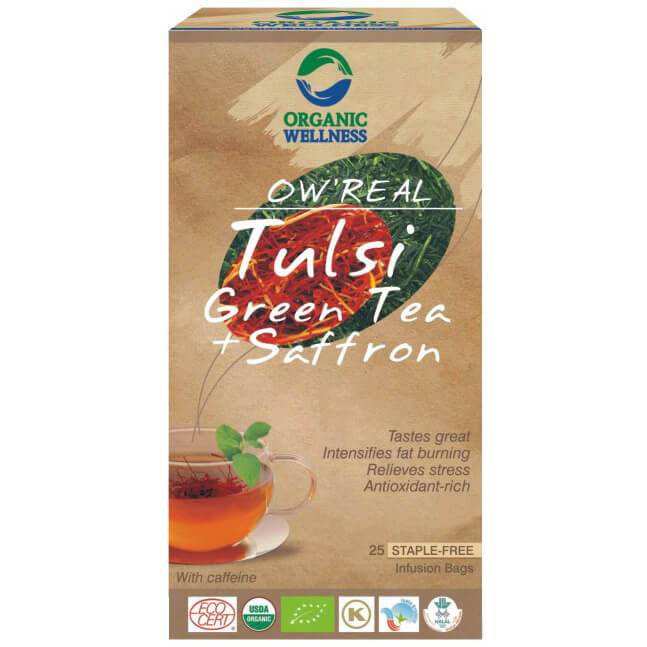 Organic Wellness OW' Real Tulsi Green Tea+Saffron, 25 Tea Bag(s), Natural